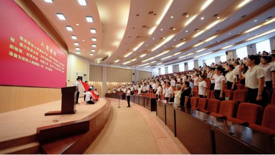 获得“光荣在党50年”纪念章的老党员代表、学校机关党群部门负责同志、新发展党员代表等共200余人参加党日活动。